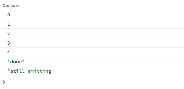 Even though our implementation works, there's an edge case we haven't accounted for: we can keep emitting values even after having called complete. Try this: